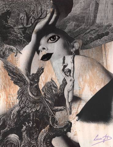 Collages : Je ne sais ni peindre ni dessiner. Alors je traduis mes visions en images découpées dans des magazines.